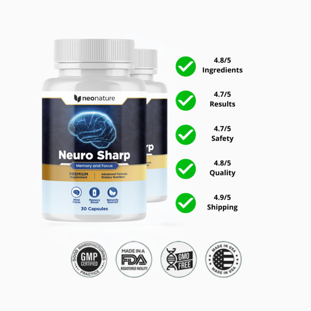During our investigation, we found that Neuro Sharp is manufactured in FDA-approved facilities under strict GMP standards. The company promotes a clean-label approach with full ingredient transparency, combining traditional herbal extracts, antioxidants, and clinically studied nootropic compounds to enhance brain function, improve neurotransmitter balance, and protect against oxidative stress—while also supporting mood stability and long-term neurological health.