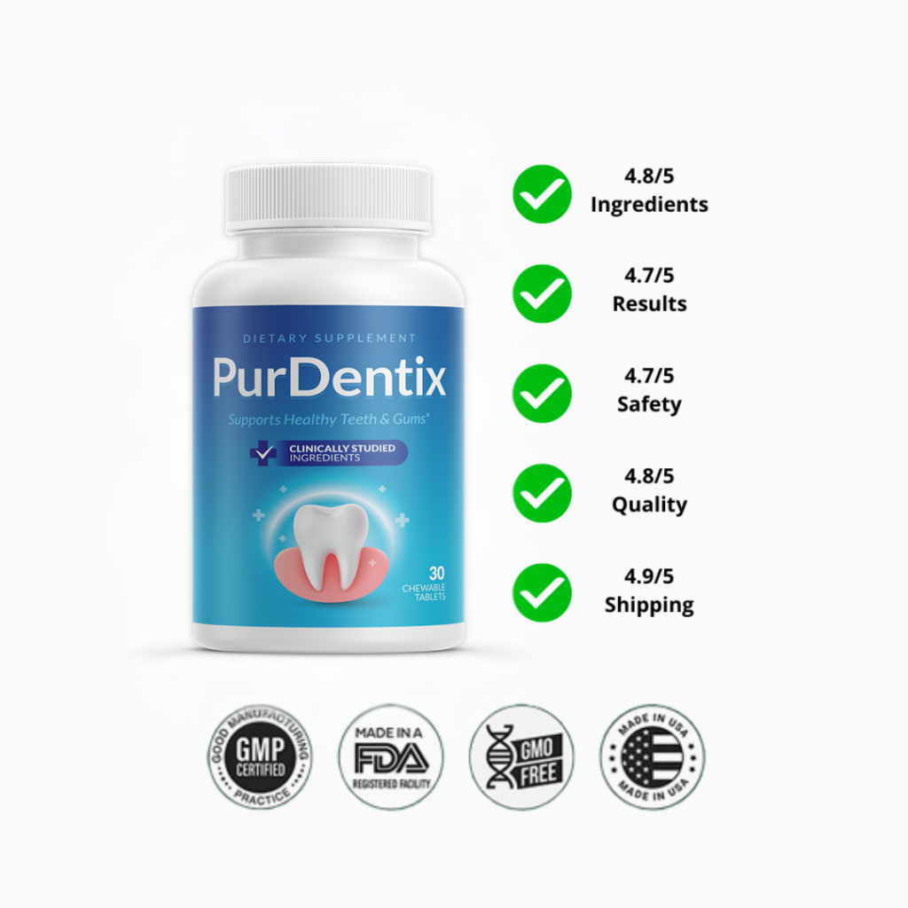 PurDentix is designed to support your overall oral health and well-being. All ingredients in PurDentix have been carefully selected for their natural benefits and are continuously tested for purity to ensure they are free from toxins and contaminants. Additionally, according to the official website, PurDentix is manufactured in FDA-approved facilities under strict, sterile, and precise standards.